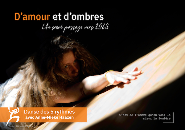 * Stage de Nouvel an D’amour et d’ombres : un sacré passage vers 2026, pour clôturer l’année en beauté et nous élancer plein d’inspiration dans l’année qui vient. Avec Anne-Mieke du 26 au 29 décembre à Boitsfort. Intention: nous accueillerons toutes les facettes de qui nous sommes et accueillerons nos ombres, pour nous réconcilier pleinement avec nous-mêmes.