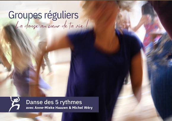 * Tu as envie de danser les 5 rythmes régulièrement, d’intégrer une tribu en mouvement, et d’évoluer dans ta pratique? Rejoins un des groupes réguliers qui commencent la semaine du 13 avril prochain: